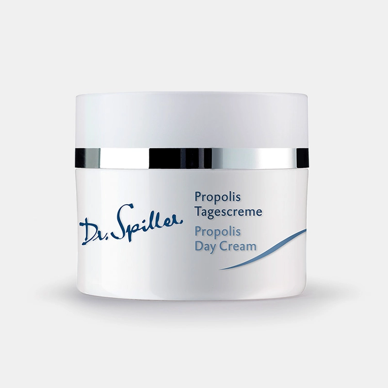 Die Propolis Tagescreme verspricht klärende Pflege, die unreine und ölige Haut wieder ins Gleichgewicht bringt. Der Propolis-Extrakt sorgt dafür, dass die Hautflora ausgeglichen wird und die Haut ins Reine kommt. Vitamin A regt darüber hinaus die Zellteilungsrate an und unterstützt den Aufbau der Epidermisschichten. Für ein gesundes und von Unreinheiten befreites Hautbild.